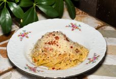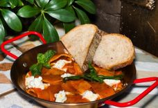 крупная паста трубчатой формы с сыром страчателла и томатным соусом по семейному рецепту