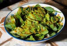 Зеленый салат с авокадо и хумусом
