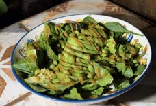Зеленый салат с авокадо и хумусом
